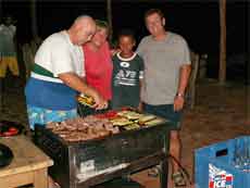 Bei Sigo kaufen wir große Mengen Grundnahrungsmittel, wie Nudeln, Reis, Kaffee, Butter, Eier, Saft, Zwiebeln, Kartoffel usw. ein. Beim Unicasa decken wir uns dann mit frischem Lomido, Solomo (Rostbraten) und reinem Rinderhackfleisch (aus Pulpa de Negro) ein. Das Fleisch vakuumieren wir ein bzw. die weniger schönen Teile werden geschnetzelt und wandern ins Einweckglas. Das Hackfleisch brate ich kurz in der Pfanne an, gebe Tomaten aus der Dose dazu und koche diese Mischung, allerdings ohne Zwiebeln, auch im Einweckglas 20 Minuten ein. Das Fleisch hält dann ohne Kühlung mindestens ein halbes Jahr. Wir haben Rinderbraten vom Dez. 2005 aus Teneriffa vor einigen Tagen gegessen, er hat noch ganz hervorragend geschmeckt. Bei den günstigen Preisen hier in Venezuela muss man sich einfach bevorraten. Am 31.10. findet in der Sun Set Bar eine Halloween Party statt, für uns ist es das Abschiedsfest von Porlamar und Venezuela, denn am 01.11. ist das Wetterfenster gut für den Sprung zu den Testigos und in den Inselbogen. Nur unser Diesellieferant hat uns hängen lassen und wir müssen am Morgen bis 8.30 Uhr warten, bis er mit unseren Benzinkanistern und der Auffüllladung Diesel kommt. Alle anderen 5 deutschen Schiffe sind schon zwischen 6 und 7 Uhr losgegangen. Da man meistens die gesamte Strecke bis in den Inselbogen wegen der Ostwindlage motoren muss, braucht man nicht nur volle Tanks, sondern auch noch einige Kanister an Bord, damit man von dem billigen Sprit auch im Inselbogen noch etwas hat. Doch auch wir schaffen die Strecke bis zu den Testigos noch bis abends um 20 Uhr, die Ankerbucht im Norden der Isla Grande kann auch bei Dunkelheit gut angelaufen werden, außerdem haben die vor uns eingetroffenen Schiffe eine regelrechte Lichterkette für uns angemacht.