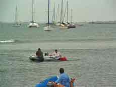 Geschafft, wir sind in der weit nach Südwesten offenen Ankerbucht von Porlamar/Isla de Margarita angekommen. Die Skyline hinter dem mit Palmen bewachsenen Sandstrand erinnert mit den bis zu 20 Stockwerken hohen Wohnsilos und Hotels ein wenig an New York und lässt nicht gerade ein „karibisches Feeling“ aufkommen. Da die Isla de Margarita auf 10°57’ Nord und somit weit südlich der Hurrikan-Zugbahnen liegt, gilt dieser Ankerplatz als sicher, aber auch als sehr rollig, denn der östliche Wind passt nicht zu dem Schwell, die aus Südost in die Bucht hinein steht. Juan, der an der Nordostseite der Bucht ein Büro und einen bewachten Dingi Steg betreibt, übernimmt für uns die Einklarierung beim Hafenamt in Pampatar für 150.000 Bolivares (50 €) und erläutert uns ausführlich die Sicherheitslage und wie man sich in der Großstadt Porlamar zu verhalten hat. Danach geht es uns wie fast allen Neuankömmlingen und wir fragen uns, warum wir denn überhaupt hierher gekommen sind? Hurrikansicherheit hin oder her, wenn man nach Juan's ausführlicher Belehrung nicht mal allein in die Stadt gehen kann, keinen Rucksack, kein Foto mitführen, immer ein Taxi für die Fahrten in die Stadt nehmen und die Einkäufe am besten nur mit den von Juan arrangierten Busfahrten zu den Supermärkten machen sollte, dann muss man ernsthaft darüber nachdenken, ob dies der geeignete Aufenthaltsort für die nächsten drei bis vier Monate ist. Die Stimmung sinkt erst mal auf Null, denn auch das Einklarierungsprozedere dauert von Freitagmorgen, Abgabe der Papiere, bis Dienstagnachmittag, bis wir dann endlich das offizielle Permit für die nächsten 6 Monate erhalten. Am Montag musste Helmut als Skipper dann auch noch eine Unterschrift in Pampatar vor dem Hafenkapitän leisten, was wiederum einen halben Tag in Anspruch nahm.