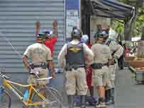 Nachdem wir mit Ulli und Gerdi, die schon 1 Woche vor uns hier eingetroffen sind, die ersten Erkundungsgänge durch die Millionenstadt Porlamar mit der Vielzahl von Einkaufsstraßen und riesigen Einkaufszentren unternommen haben, relativieren sich die Befürchtungen und Ängste. Wir fühlen uns weder bedroht noch Gefahren ausgesetzt, denen wir nicht auch in einer deutschen Großstadt ausgesetzt wären. Überall in den Straßen sind Sicherheitspolizisten, städtische und überregionale, anzutreffen, die ganz offensichtlich die Kriminalität unter Kontrolle halten, so dass wir uns vollkommen ungezwungen bewegen können und das pulsierende Geschäftsleben auf dem Plaza de Bolivar beobachten können. Überall wird verkauft und Ware von fliegenden Händlern angeboten, sogar an den stark befahrenen engen Straßen der Innenstadt sind Stände aufgebaut, wo den ganzen Tag über Hotdog, Arepas und andere Leckereien verkauft werden. Wir lassen uns einen frisch gepressten Orangensaft (mindestens 5 bis 6 große Apfelsinen) schmecken und sind sichtlich guter Laune, besonders nachdem wir für 2 kg frische Rinderlende 39.000 Bolivares, das sind 13 € bezahlt haben. Da werden wir doch ab sofort selbst das Gulasch aus Rinderlende zubereiten. Aus Sicherheitsgründen sollte man hier nicht mit Kreditkarten, sondern alles in bar bezahlen. Da hat man dann auch einen besseren Umrechnungskurs und so wechseln wir unsere US$ in die Landeswährung Bolivares, mit der Folge, dass wir einen dicken Packen 20.000 BS Scheine in der Tasche haben und das erste Mal im Leben (Bolivares) Millionäre sind.