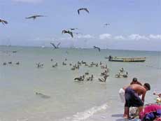Am nächsten Tag brechen wir zu der 15 sm entfernten Ferieninsel Coche auf, in der Hoffnung, dass wir dort etwas ruhiger vor Anker liegen und das Wasser klarer und nicht so grün wie in Porlamar ist. Doch beides trifft nicht zu, das Wasser ist ebenfalls grün und voller Schwebstoffe und die Wassermotorradfahrer, die vor der Hotelanlage um uns herum düsen, halten das Wasser in Bewegung und verpesten die Luft. Wir flüchten vom Schiff und machen einen Spaziergang am Strand entlang nach San Petro, einem Fischerdorf, dass touristische aufgebaut werden soll. Die Straßen sind hervorragend ausgebaut und 2 spurig!!, da wird wohl noch einiges an Verkehr erwartet. Im Fischerlokal Bahia del Carmen an der Promenade bekommen wir sehr preiswert Fischfilet mit Reis und Salat für 22.000 BS (7,80 €) pro Person. Da lohnt es sich ja fast nicht, an Bord etwas zu kochen. Ab 16.00 Uhr haben wir dann die