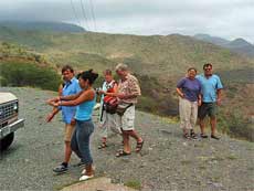 Bucht wieder für uns allein, da fahren die Ausflugsschiffe nämlich wieder zurück nach Porlamar und der Strand mit den wenigen überwiegend deutschen Hotelgästen wirkt wie ausgestorben. Mit den anderen Ankerliegern vereinbaren wir für die Nacht den Kanal 68 als Standby – Kanal, aber wirklich ängstigen braucht man sich nicht. Die Fischer, die tagsüber um uns herum ihrer Arbeit nachgegangen sind und mit ihrem Fang nach Hause fahren winken freundlich zu uns herüber. Bewegung tut Not und gut, ein Spaziergang zum fast eingetrockneten Salzsee zusammen mit Monika, Gerdi und Ulli ist angesagt. Die Luft flirrt über dem Salzsee bei 34° C, wir müssen aber auch immer in der größten Mittagshitze unsere Spaziergänge machen. Im Osten über den rotbraun marmorierten Hügeln von Coche ziehen sich die Wolken zusammen und nach wenigen Minuten werden wir von einem heftigen Regenschauer überrascht, der Untergrund wird matschig und prompt versinke ich bis zum Knöchel in einem schwarzsandigen Matschloch und die Sandalen bleibt dann auch noch darin stecken. Sch.......!!!!