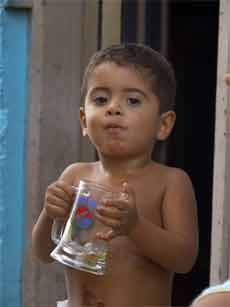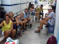 Am Samstag 19.8. motoren wir ostwärts zur 7 sm entfernten Insel Coche. Hier waren wir ja schon einmal und kennen uns aus. Ein Spaziergang durch den in der Wochenendruhe liegenden Ort und dem Mittagessen im Restaurant „Bahia del Carmen“, musste sein, schon allein, weil der Name gut passte. Diesmal haben wir nach 4 Tagen Fischessen an Bord zur Abwechslung mal „grilled Seafood“ (Muschel, Garnelen, Oktobus) gegessen und das eiskalte Polar schmeckt aus der Flasche auch wieder prima. Auf dem Rückweg zum Schiff werden wir von einem Einheimischen zur Happy Hour am Straßenrand vor seinem zukünftigen Polarbier-Auslieferungslager eingeladen. Er und seine Familie lassen es sich nicht nehmen, uns auch ihre „Spezial-Cubalibre“ zu kredenzen. Trotz Sprachschwierigkeiten erleben wir eine rund um gemütliche Happy Hour. Bevor es dunkel wird machen wir uns aber dann doch auf den Weg, um sicher an Bord zu kommen.