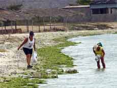 Die Zeit für die Rückfahrt zur Westküste von Margarita, zum Fischerdorf Robledal, rückt heran. Am 16.08. starten wir wieder morgens um 6.30 Uhr, um diese 52 sm bei Tageslicht zu schaffen. Anfangs ist die Strömung gegen uns und wieder lassen wir unsere Maschine zur Unterstützung mitlaufen. Da an diesem Morgen gute Fischfangzeiten angekündigt sind, darf Rainer die Angel rauswerfen. Unfassbar, eine halbe Stunde später, 7.30 Uhr, wir haben noch nicht mal gefrühstückt, haben wir was am Haken. Der Stress geht los, Fahrt raus aus dem Schiff, Angel langsam einholen, Messer, Tuch zum Festhalten, Schnaps zum Betäuben des Fisches und das Gaff um den Fang an Bord zu ziehen werden bereitgelegt. Dann kommt er näher, der Fisch. Rainer hat einen 1,30 m langen Barrakuda gefangen. Der Wahnsinn, was sollen wir mit soviel Fisch anfangen, wo Carmen doch gar keinen Fisch mag!? Na, erst mal nimmt Helmut den Fisch aus, schuppt ihn und schneidet ihn erstmal in 3 riesengroße Portionen. Jetzt erst mal in den Kühlschrank damit, das Schiff in Fahrt bringen und in Ruhe frühstücken. Auf nüchternen Magen Fisch verarbeiten, das ist nicht so mein Ding! Aber für die nächsten 2 Tage gibt es Fisch in allen Variationen. Das letzte Stück verschenken wir dann an eine spanische Segelcrew, die wie wir vor den Fischerhütten in Cubagua, einer kleinen Insel südwestlich von Margarita, vor Anker liegen. Cubagua ist das Muschel- und Perlmuttparadies schlechthin und unsere „Muschelsucherin“ ist gar nicht mehr vom Strand wegzubekommen. Bei unserer Wanderung an die Ostseite können wir die Ruinen der ersten europäischen Ansiedlung in Amerika, Nueva Cadiz, erahnen, die hier 1492 gegründet wurde. Die Perlenindustrie brachte dem spanischen Mutterland Reichtum, allein in einem Jahr exportierte Cubagua 820 Pfund Perlen. Nach einiger Zeit starker Ausbeutung der Muschelbänke wurden auch in Coche und bei Cumana Muschelbänke gefunden und der Handel ging zurück. Am Weihnachtstag 1541 zerstörte ein Erdbeben mit einer hohen Flutwelle die Stadt und die Perlenzucht.