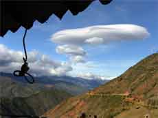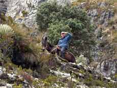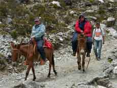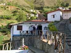 In Los Nevados ist die Zeit offensichtlich stehen geblieben, man lebt von der Vermietung von Unterkünften (Posadas) und von dem, was hier angebaut wird. Zum Hausbau wird alles verarbeitet, was es hier gibt, die Dächer werden mit Bambusstangen zu den Wohnräumen hin isoliert, das hält in der kühlen Jahreszeit warm und in der Mittagshitze kühl. Die Posadas sind einfach, aber sauber. Am Abend bekommen wir ein leckeres typisches Landesessen, die andinische Milchsuppe, Hühnchen mit Reis und Salat, dazu frisch gepressten Maulbeersaft und zum Abschluss cafe negro. Hier geht man früh zu Bett, um wenig Energie zu verbrauchen. Glasfenster gibt ebenfalls keine, die Fensteröffnung wird mit Holzläden verschlossen, wenn man morgens Licht braucht, dann ist eben das Fenster offen und es weht ein kühler Andenwind ins Zimmer. Das kann auf 2500 m Höhe schon mal empfindlich kalt sein. Auf dem aus Stein gebauten Bett mit Schaumstoffmatratze schlafen wir dann mit 2 Wolldecken zugedeckt und zusammen gekuschelt tief und fest. In dieser Höhe gibt es keinen störenden Lärm.