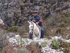 Die 4 stündige Rückfahrt mit dem Geländejeep ist dann aber wirklich abenteuerlich. Der erdige, nur an manchen Stellen mit Steinen befestigte Weg ist dermaßen ausgewaschen, dass er bei uns noch nicht mal als Flusslauf genehmigt würde. Das extreme Gefälle bzw. die beängstigenden Steigungen und Haarnadelkurven fordern vom Fahrer höchste Aufmerksamkeit und Fahrkunst. Da der Weg gerade mal so schmal ist, wie der Jeep breit ist, muss bei Gegenverkehr oft in die wenigen Ausweichstellen zurückgesetzt werden, das tötet den Touris den letzten Nerv, unsere auch. Doch die Jeepfahrer halten dann an der Begegnungsstelle erst mal ein Schwätzchen und tauschen die Neuigkeiten aus, denn eine Tageszeitung gibt’s in Los Nevados nicht. Wir sind sehr froh, dass wir einen umsichtigen Fahrer haben, der uns material- und personenschonend sicher nach Merida zurückbringt. Markus hatte gesagt: „Da muss man schon einen guten Fahrer und einen Jeep mit guten Bremsen nehmen und vielleicht auch etwas mehr zahlen, wenn man heil da herunterkommen will.“