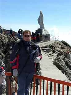 morgens um 6.30 Uhr stehen Helmut und Axel am Eingang zur Teleférico parat, um Karten für die erste Bahn zu bekommen, denn morgens früh sind die Chancen für eine wolkenfrei Aussicht am besten. Die Teleférico ist die längste (12.5 km) und höchste Seilbahn der Welt, sie befördert uns über 4 Stationen hinweg von 1650 m bis auf den Pico Espejo mit 4765 m, ein sprichwörtlich „atemberaubendes“ Erlebnis mit fantastischer Aussicht über die gesamt Region. Gleich nebenan liegt der Pico Bolivar mit 4980 m, ein wenig mit Schneefeldern bedeckt. Im höchsten "coffee shop" der Welt nehmen wir unser 2. Frühstück ein, eine nahrhafte Pizca Andina, das ist eine typische Anden Milchsuppe mit Ei, Kartoffeln, Lauch, frischem Koriander und Käse.