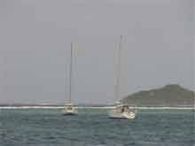 Die Wettervorhersagen sind nicht gerade die besten. Eine Tropical Wave, das sind Regenfronten mit starken Winden, gibt der nächsten die Hand. Vorbei an den Pitons von St. Lucia müssen wir hart am Wind durch den St. Vincent Channel und haben mal wieder das Gefühl, dass wir nicht von der Stelle kommen. Bei 3 Knoten Fahrt ist das auch so, der Strom mit 2,5 Knoten versetzt uns stetig nach West und die Pitons sind immer noch nicht achteraus. Doch um 14 Uhr kippt dann offensichtlich die Tide und wir laufen herrliche 6 Knoten mit Genua und Besan bei gleichem wind und gleicher Welle. Endlich ist die Nordwestspitze von St. Vincent erreicht und da ist es auch schon vorbei mit dem beständigen Wind. Heftige Fallböen schütteln das Schiff, dann ist wieder Windstille. So ein Gezappele, da laden wir doch noch ein wenig die Batterien und fahren zügig in die Cumberland Bay, ankern auf 20 Meter mit Landleine, die ein Einheimischer für 10 ECD an einem Posten vor der Black Baron Bar und Restaurant (Holzhütte mit zementierten Boden) festmacht. Neben uns ankern wieder die Italiener mit der roten 60 Fuß Jacht aus der Marigot Bay. Bei denen wird ja alles mit der Filmkamera festgehalten. Sogar vom Masttop werden Aufnahmen gemacht und dann holen die doch tatsächlich 3 Einheimische mit ihren Steeldrums an Bord und lassen die zum Sundowner spielen. Was es so alles gibt auf dieser Welt! Einklarieren für St. Vincent und die Grenadinen wollen wir erst in Bequia, am nächsten Vormittag gehen wir weiter. Wieder das gleiche Spiel, im Lee der Insel Fallböen, Windstille, im Bequia Channel 25-30 Knoten Wind und 1,5 Meter Welle von der Seite. Die 18 Meilen sind in 3,5 Std. geschafft. Von unseren Chartertörns vor 7 und 10 Jahren wissen wir, dass der Ankergrund in der Admiralty Bay in Bequia schlecht ist. Nachdem wir beim 3. Ankermanöver auch noch eine schwere Kette eingefangen haben, geben wir auf und nehmen für 40 ECD eine Boje; laut dem Bootboy, hurrikansicher!!. Es ist ruhig in Bequia, die Leute grüßen freundlich, in der Frangipani-Bar gibt es ab 1. Juni keine!! Happy Hour mehr und die Whalebooner-Bar hat geschlossen. Sonst ist alles wie damals, die Häuser haben vielleicht etwas mehr Farbe bekommen. Dafür ist aber der Himmel grau in grau, ein Regenschauer jagt den nächsten, da hat man keine Freude mehr. Die nächste Etappe nach Mayreau ist wiederum nur 25 Meilen, doch auch auf dieser Strecke werden wir wieder von Regenschauern kräftig gewaschen und das genau in dem Moment, wo Helmut einen Barrakuda aus dem Wasser ziehen will. Die in Bequia neu erstandenen Köder und Angelleine haben sich schon bezahlt gemacht!