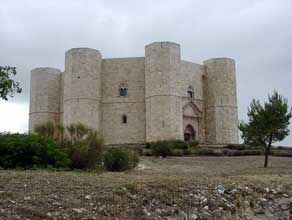 Von Trani fahren wir mit dem Bus vorbei an Obstplantagen nach Andria. Als kaiserliche Krone auf einem Hügel der Murge erhebt sich in der Nähe von Andria das rätselhafte, malerische Castel del Monte, das von Kaiser Friedrich II. von Hohenstauffen erbaut wurde. Alles darin bezieht sich irgendwie auf die Zahl 8: achteckig ist die Form, acht Türme rahmen es ein, acht Zimmer bilden sowohl die erste als auch die zweite Etage. |