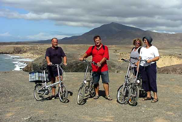 Von Playa Blanca erreicht man in 12 Minuten mit der Schnellfähre Fred. Olsen die Nachbarinsel  Fuerteventura. So einfach kommen wir da nicht mehr hin und wir nutzen die Gelegenheit für einen gemeinsam Tagesausflug mit Gerdi und Ulli und dem 15 € Miet-Auto von Bob, um über die Insel Fuerteventura zu fahren. Das touristisch lebhafte Corralejo liegt schnell hinter uns und wir fahren in Richtung Westküste. Fuerteventura – die ruhige Insel - wir haben das Gefühl durch eine entvölkerte Einöde und unendliche Einsamkeit zu fahren. Der wüstenhaft afrikanische Eindruck wird durch einige Täler mit Palmenhainen unterbrochen.  Doch dann an der Ostküste, überwältigende endlose weiße Sanddünen, die sich durch den Wind ständig verändern. Ein Tagesausflug muss sich auf den Norden der Insel beschränken, da zwischen der 1. und letzten Fähre gerade mal 9 Stunden Zeit bleiben. Uns hat dieser kleine Eindruck der Insel gereicht. Für Segler ist Fuerteventura kein sehr reizvolles Segelrevier.